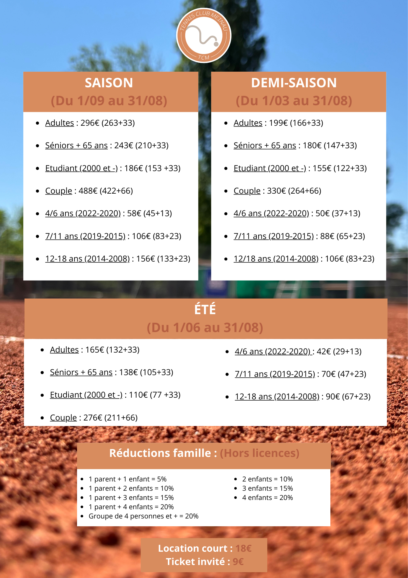 Découvrez les tarifs des cotisations au Tennis Club de la Meinau